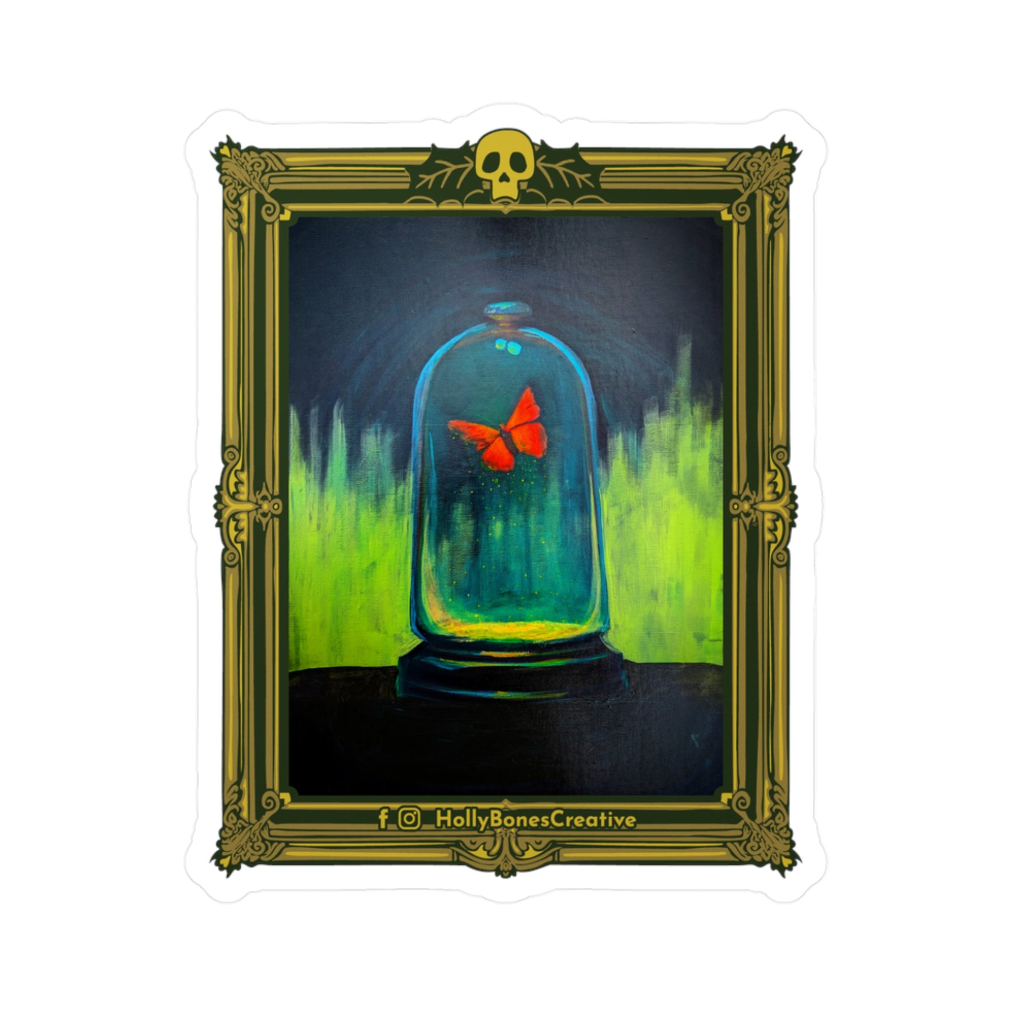 Note on Made-to-Order Stickers: To provide a comprehensive selection of stickers for all of Holly Bones' artworks and avoid restocking delays, especially during busy in-person events, this sticker is made-to-order through a print-on-demand partner and shipped directly to you. These stickers may differ slightly in appearance from sticker purchases made at in-person events.