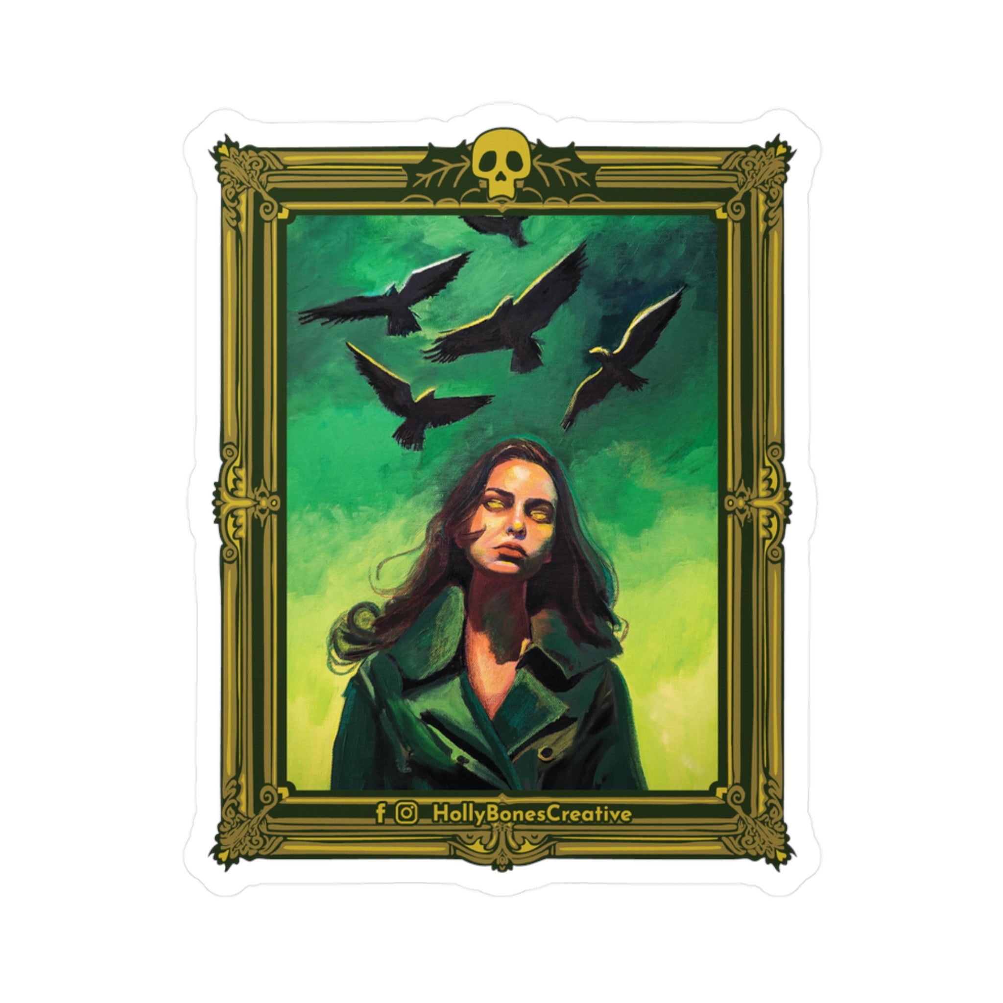 Note on Made-to-Order Stickers: To provide a comprehensive selection of stickers for all of Holly Bones' artworks and avoid restocking delays, especially during busy in-person events, this sticker is made-to-order through a print-on-demand partner and shipped directly to you. These stickers may differ slightly in appearance from sticker purchases made at in-person events.