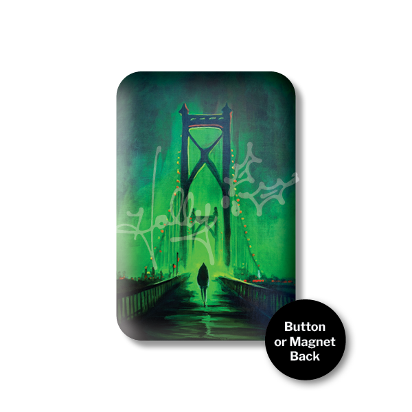 A durable, button or magnet featuring my “Crossing Over” artwork, hand-pressed by me in my Ypsilanti studio.