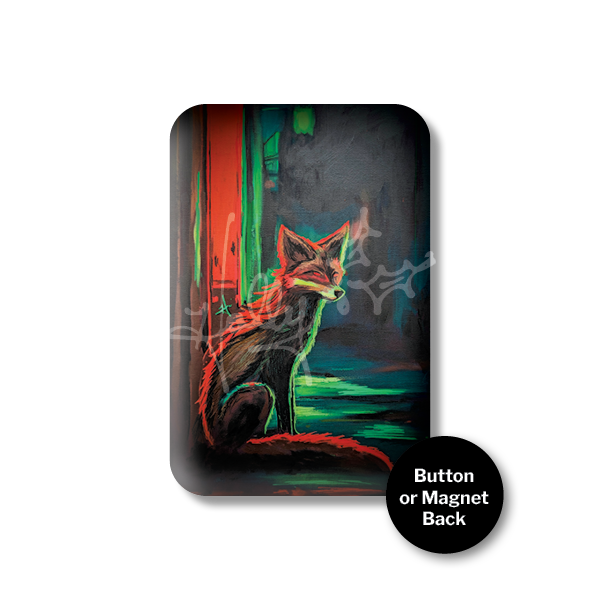 A durable, button or magnet featuring my “Cunning” artwork, hand-pressed by me in my Ypsilanti studio.