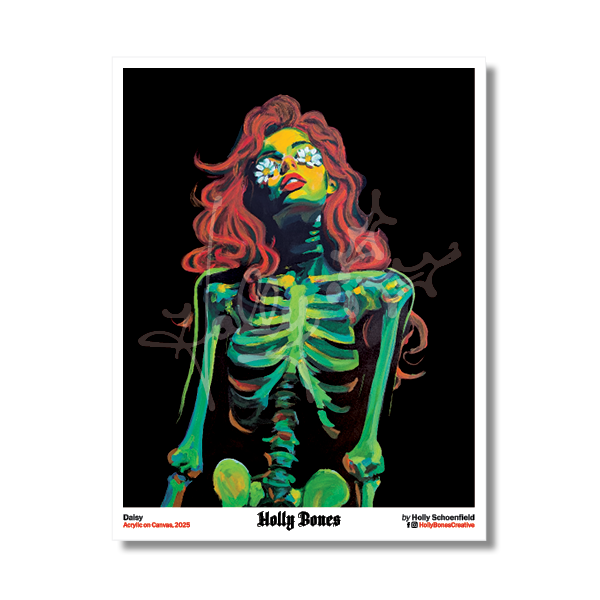This is an 8” x 10” open edition giclée print of “Daisy” by Holly Bones.