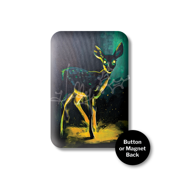A durable, button or magnet featuring my “Doe No. 1” artwork, hand-pressed by me in my Ypsilanti studio.