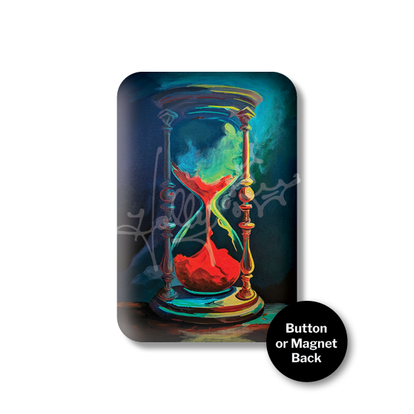 A durable, button or magnet featuring my “Final Hours” artwork, hand-pressed by me in my Ypsilanti studio.