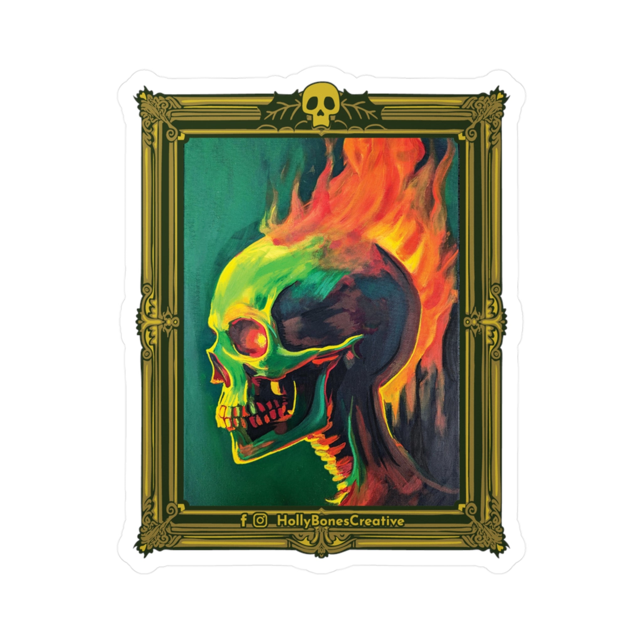 Note on Made-to-Order Stickers: To provide a comprehensive selection of stickers for all of Holly Bones' artworks and avoid restocking delays, especially during busy in-person events, this sticker is made-to-order through a print-on-demand partner and shipped directly to you. These stickers may differ slightly in appearance from sticker purchases made at in-person events.
