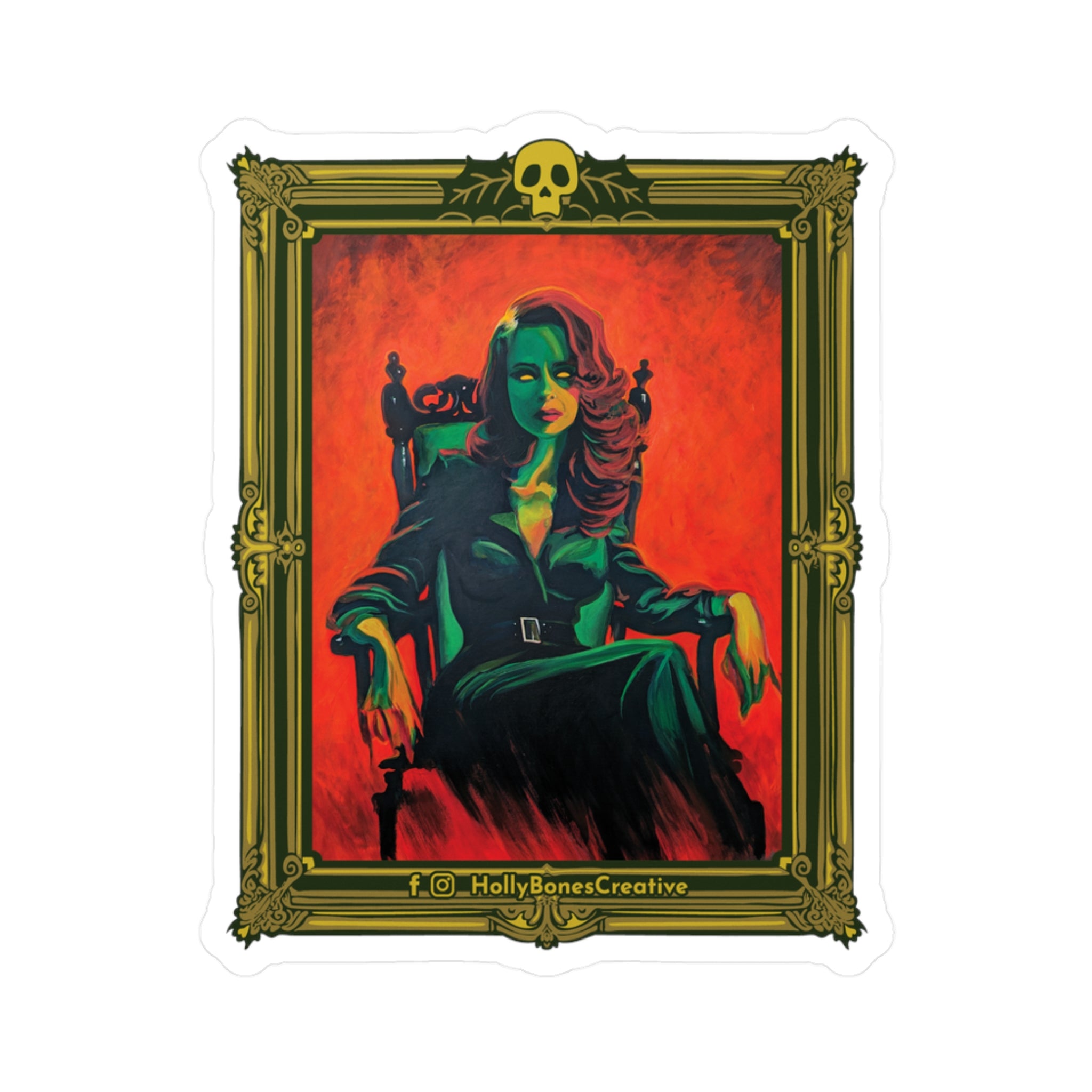 Note on Made-to-Order Stickers: To provide a comprehensive selection of stickers for all of Holly Bones' artworks and avoid restocking delays, especially during busy in-person events, this sticker is made-to-order through a print-on-demand partner and shipped directly to you. These stickers may differ slightly in appearance from sticker purchases made at in-person events.