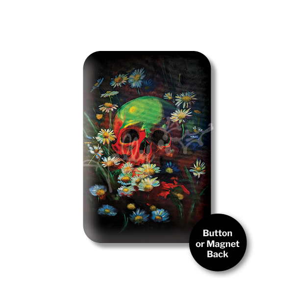 A durable, button or magnet featuring my “Pushing Up Daisies No. 1” artwork, hand-pressed by me in my Ypsilanti studio.