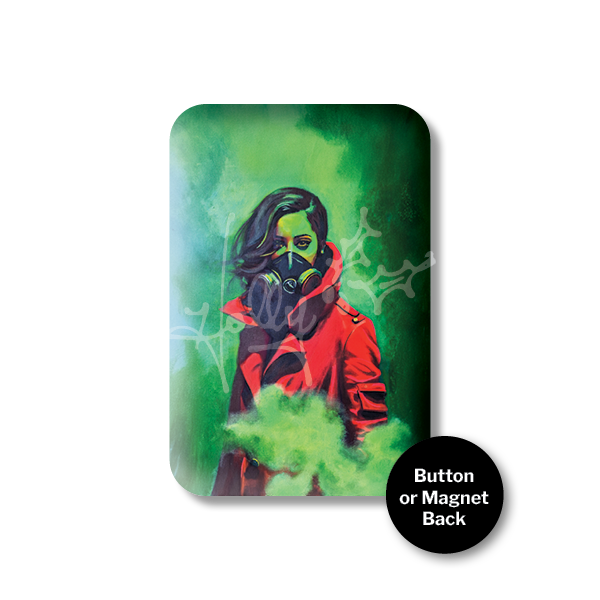 - The pin-back option is ideal for securing to fabrics and textiles, while the magnet is ideal for refrigerators and other magnetic surfaces.