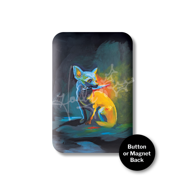 - Choose between a pin-back button or a magnet.